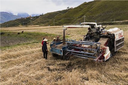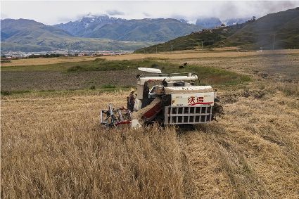 每年9月初,都是甘孜縣青稞收獲的季節(jié)。今年的秋收季已經(jīng)開始,甘孜縣甘孜鎮(zhèn)斯俄片區(qū)的村民正忙著收割青稞。如今的雪域高原,農(nóng)業(yè)生產(chǎn)已經(jīng)基本告別人力耕作時代,實(shí)現(xiàn)了機(jī)械化耕作。今年甘孜縣的青稞長勢良好,有望成為又一個豐收年。