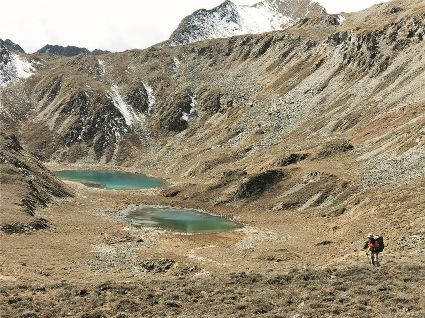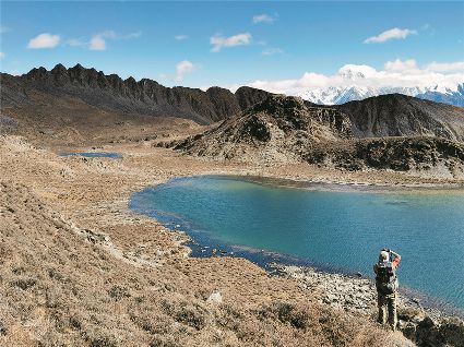 雪山、海子是高原風(fēng)光的重要組成,讓人迷醉的風(fēng)景里少不了它們的身影。在大山脊看貢嘎的徒步線路中,沿著大山脊還有一條較為小眾的徒步線路,是由海子串起的,同樣整個線路都可以看見貢嘎主峰。