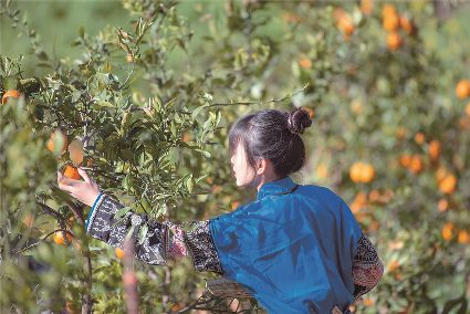 不遠(yuǎn)處,農(nóng)家大哥左握微型秤,旁邊框框紅艷艷草莓待稱,右拿手機(jī)收付款。穿過(guò)溪流木橋,黃四娘家青果累累,爍爍梨花下,女兒正梳妝挽云鬢;沈家河壩菜花黃黃,別院人聲鼎沸。遙想當(dāng)年,坡陡路險(xiǎn)。而今,鄉(xiāng)村振興,片片梯田,阡陌交通,戶戶通路。雨天一身泥,晴天一身灰已不復(fù)返。