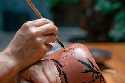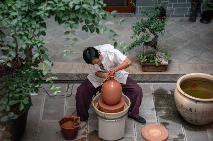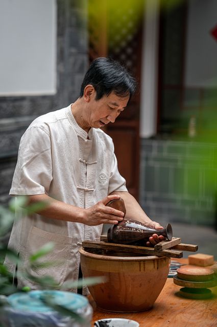 生活在云南省紅河哈尼族彝族自治州建水縣碗窯村的徐榮洪是當(dāng)?shù)匦旒腋G的第五代制陶藝人,也是非遺建水紫陶燒制技藝的傳承人。 泥料制備、拉坯造型、濕坯裝飾、雕刻填泥、高溫?zé)?、無(wú)釉磨光……要想做出精良的紫陶工藝品,每個(gè)流程都需要潛心鉆研?!爸谱骷妓嚟h(huán)環(huán)相扣,某一道工序出現(xiàn)紕漏,燒出來(lái)就是瑕疵品?!?徐榮洪拿起刻刀,對(duì)陶坯表面開(kāi)始進(jìn)行雕刻。 今年57歲的徐榮洪小時(shí)候就跟著長(zhǎng)輩上山挖陶泥,多年來(lái)堅(jiān)持鉆研建水紫陶的制作技藝。 徐榮洪介紹說(shuō),作為紫陶藝人,以陶為紙,根據(jù)器型將不同的文化與藝術(shù)形式注入其中,使其具有無(wú)限活力。非遺文化閃爍著人類(lèi)智慧的光芒,也承載著人們心底的情思鄉(xiāng)愁。