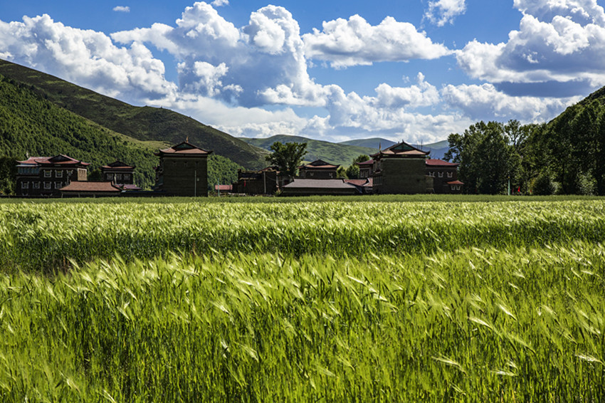然后行走在山水之間,擁抱大自然,尋找屬于自己的“詩和遠(yuǎn)方”。油綠的青稞、小麥,散發(fā)出濃郁的田園風(fēng)味;天邊群山起伏,磅礴的氣勢(shì)瞬間感覺人在自然面前實(shí)在太渺?。粠づ顸c(diǎn)綴著開滿野花的牧場,牦牛哞鳴,一片生機(jī),細(xì)細(xì)體會(huì)牧民“逐水草而居”的生存智慧......