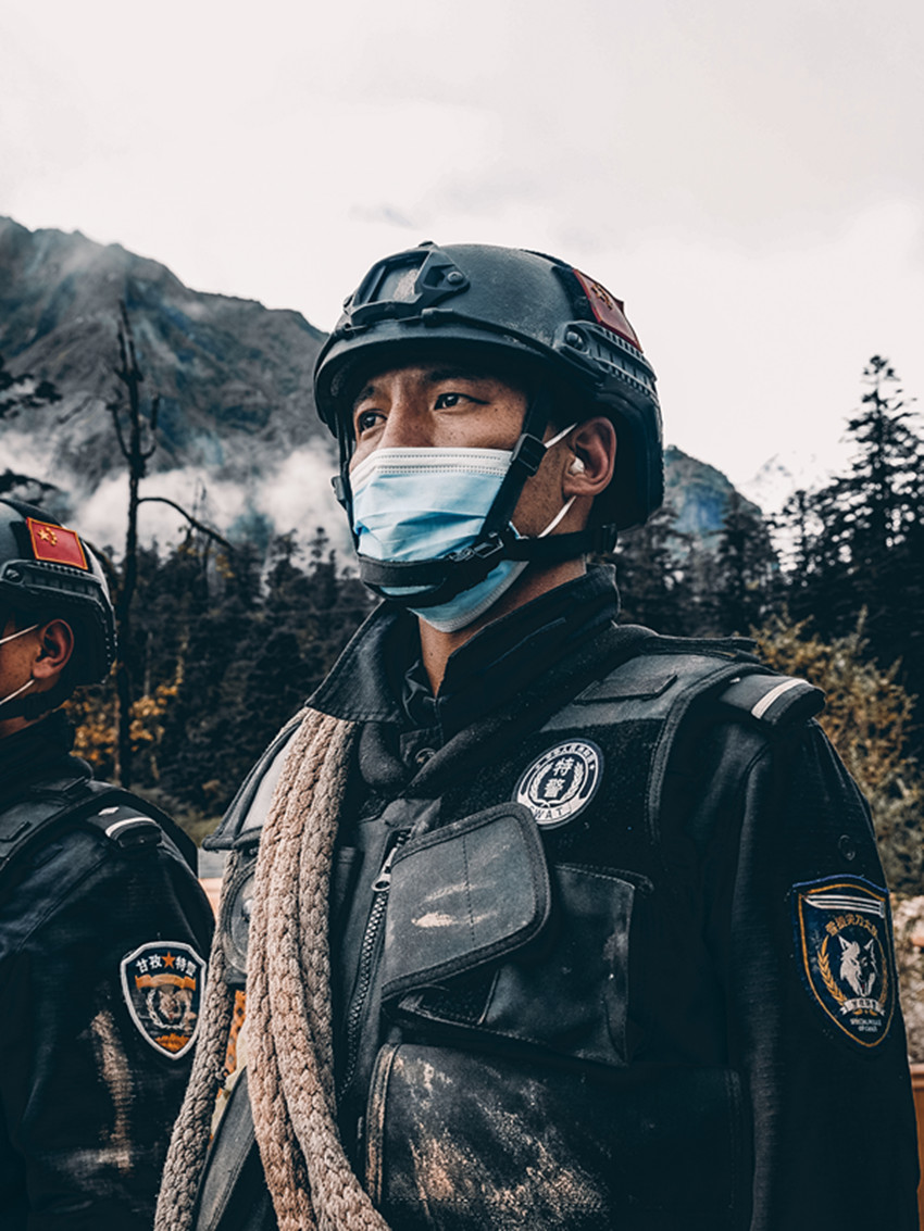 當日下午,甘孜公安特警支隊“9·5”瀘定地震24勇士受邀前往現(xiàn)場觀看攝影展。觀展現(xiàn)場,看到畫框中的自己,24勇士紛紛感言: