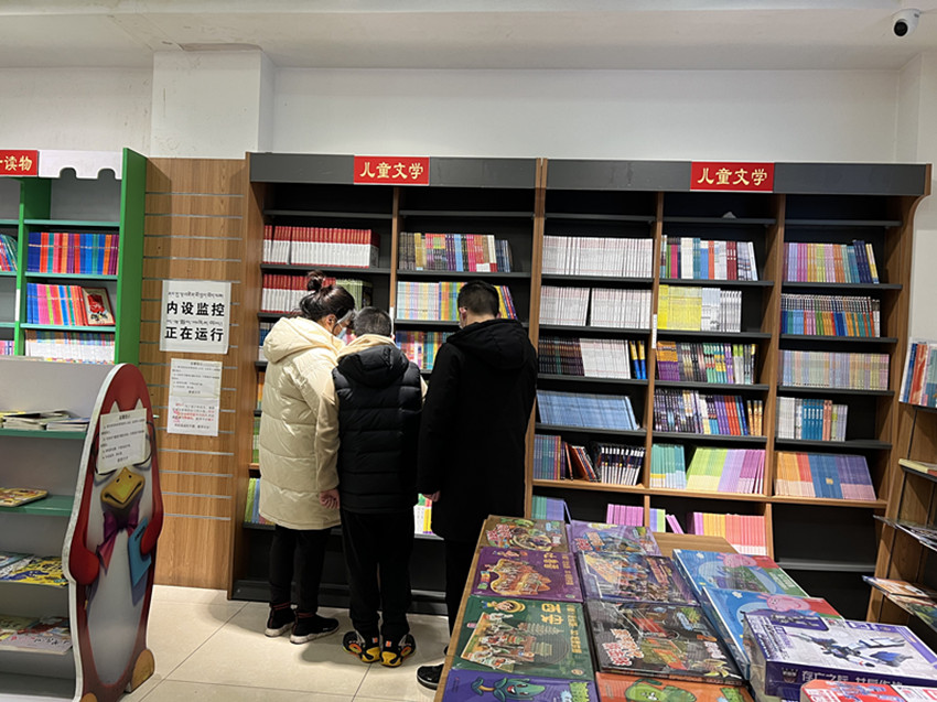 在新華書店,前來購書的小朋友們在家長的陪伴下,正在精心挑選喜愛的圖書,恬淡幸福喜悅寫在臉上。