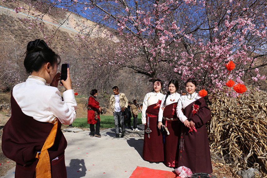 連日來,巴塘縣天氣溫暖晴好,桃花爭相綻放,玫紅的桃花層層疊疊綴滿枝頭,嬌羞可愛、沁人心脾,不僅醉了春風(fēng),更是醉了游人,引得群眾紛紛前來賞花踏青、攝影采風(fēng),沉醉在這甜蜜的春色中。