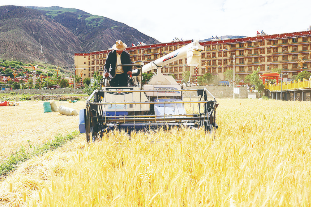 我州各地青稞、小麥陸續(xù)進(jìn)入成熟期,眼下正值“雙搶”關(guān)鍵期。放眼望去,在廣袤的田野上,一片熱火朝天的繁忙景象。村民們頭頂烈日,腳踏泥土,緊張而有序地投入到“雙搶”工作中。新型農(nóng)具為“雙搶”注入強(qiáng)大動(dòng)力,收割機(jī)在田間往來穿梭,一顆顆飽滿的麥粒從倉門傾瀉而下,源源不斷地被送上拖拉機(jī),將成熟的小麥、青稞迅速收割歸倉,展現(xiàn)出一幅喜慶熱鬧的豐收畫卷。
