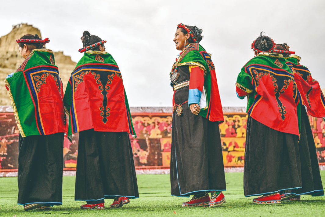 “宣舞”起源于札達(dá)縣,是西藏阿里民間傳統(tǒng)舞蹈?!靶琛比诤喜貞?、舞蹈、說唱等主要的藏民族民間藝術(shù),內(nèi)容涵蓋藏民族宗教、禮儀、風(fēng)俗、節(jié)慶等各方面的內(nèi)容。2008年,“宣舞”入選第二批國家級非物質(zhì)文化遺產(chǎn)名錄。
