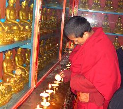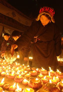傳說(shuō)藏歷十月二十五日,是藏傳佛教格魯巴(俗稱(chēng)黃教)創(chuàng)始人宗喀巴大師圓寂成佛的日子。為了紀(jì)念這位杰出的宗教領(lǐng)袖,藏區(qū)各黃教寺廟和信徒于藏歷十月二十五日,舉行誦經(jīng)、磕頭,燈供儀式等隆重的祭祀活動(dòng),祭祀宗喀巴大師在天之靈和祈愿大師賜與善良的人們以吉祥幸福。