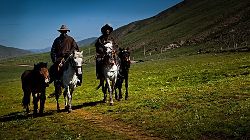 當(dāng)扎溪卡草原一望無際地層現(xiàn)在面前時(shí),相信你一定會(huì)被深深地打動(dòng)。它那氣勢(shì)磅礴不事雕琢的自然美,它的質(zhì)樸、純凈、蒼茫與曠漠,有一種大美不言的深沉。天空藍(lán)得透明,像一個(gè)巨大的藍(lán)色熒屏;云彩白得晶瑩,如絲如絮般輕輕飄過頭頂;清澈見底的雅礱江水蜿蜒流過開滿野花的草地,就連草原上的風(fēng)都帶著一股醉人的氣息。置身其間,讓人頓感神清氣爽、心曠神怡。 即使無數(shù)次地領(lǐng)略過高原上日出月落的景象,但這里的日出自有其不同凡響的輝煌。當(dāng)月亮漸漸淡出天幕的時(shí)候,大自然又開始了另一場(chǎng)更加精彩的演出:殷紅的太陽如同宇宙娩出的嬰兒,在天地被撕裂的一剎那噴薄而出,迎來了它隆重的誕生!母親幸福的臉上頓時(shí)泛起了燦爛的紅霞,把湛藍(lán)的湖水染成了酒紅,使素潔的雪山披上了盛裝,大地萬物都如受洗一般沐浴在金暉里,仿佛剛剛與太陽一同新生……