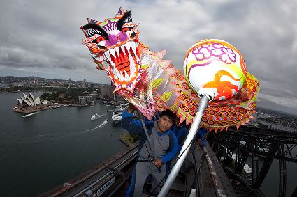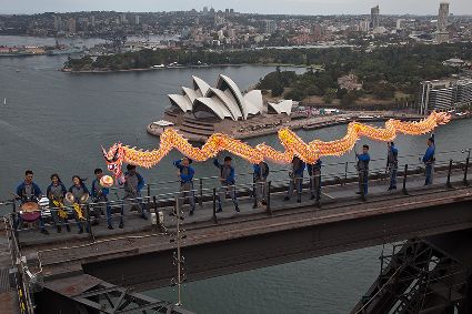 當(dāng)日,由當(dāng)?shù)厝A人團(tuán)體精心準(zhǔn)備的中國(guó)傳統(tǒng)舞龍亮相悉尼海港大橋,拉開(kāi)中國(guó)新年慶?;顒?dòng)的序幕。