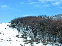 似乎是在快接近馬鞍山山脊的時候,坡度才開始變小的。這時,積雪也比較多了。