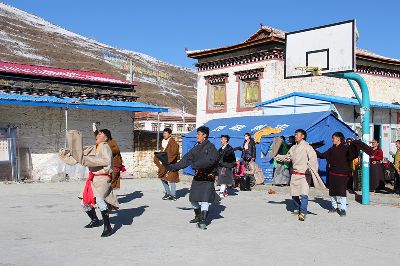中午,高原的陽(yáng)光暖洋洋的,有了空閑時(shí)間的村民們都來(lái)到活動(dòng)中心,一邊曬太陽(yáng),一邊觀看孩子們的表演。