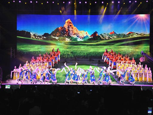 當日晚8時30分,晚會正式拉開帷幕。美輪美奐的LED屏幕與絢麗多彩的射燈同時閃亮,交相輝映,燦爛炫目的舞美視覺效果頓時震撼人心,沸騰的驚嘆聲和歡呼聲響徹長征名城。