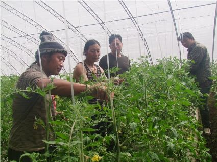 本網(wǎng)訊(馬建華 文/圖)陽春三月,爐霍大地仍然一派蕭條景象。然而在爐霍縣斯木鄉(xiāng)吉絨村的蔬菜大棚里,卻綠意盎然。紅彤彤的樹番茄、碩大的茄子、長勢(shì)喜人的青椒、紅艷艷的花卉,大棚里溫暖的春色吸引了縣城市民和游客前來觀光,購買新鮮的蔬菜。比縣城菜市場(chǎng)價(jià)格便宜一半的蔬菜,讓市民爭相前來購買。吉絨村村民將土地流轉(zhuǎn)給蔬菜種植公司,收取土地流轉(zhuǎn)費(fèi),在蔬菜大棚里打工,每天還有100元錢的收入,而且學(xué)到了先進(jìn)的蔬菜種植技術(shù),為今后發(fā)展蔬菜大棚、種植反季節(jié)蔬菜、增加經(jīng)濟(jì)收入打下了堅(jiān)實(shí)基礎(chǔ)。爐霍縣在發(fā)展高原特色現(xiàn)代觀光農(nóng)業(yè)方面邁出了可喜步伐。