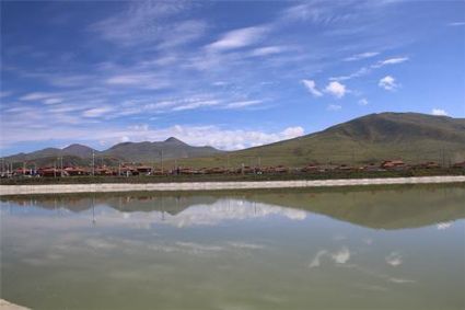 位于色達(dá)縣城郊區(qū)色曲河上的果根塘濕地,清澈的湖水如一面巨大的鏡子,附近的村莊、人工島上的綠草和鮮艷的花卉倒映其中,湖光山色,美不勝收。