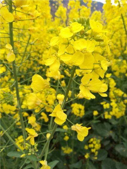油菜花是我兒時的記憶,外婆為了生計,總會在家門口的幾畝菜地里滿滿當當的種上油菜,菜花開的時候,我就會端上一根長板凳、一根方板凳坐在油菜花前寫作業(yè),油菜花的清香伴我度過了整個童年。記得兒時,每逢春季,田野里都會被一簇一簇的油菜花裝扮的金黃,大片的花兒披著一層金裝,偶爾一陣清風,大地上便掀起了片片的漣漪,烈陽下金光燦燦,甚是好看!