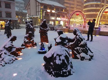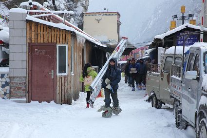 “風(fēng)雨送春歸,飛雪迎春到。已是懸崖百丈冰,猶有花枝俏。”2月4日傍晚,大片大片的雪花,從昏暗的天空中紛紛揚(yáng)揚(yáng)飄落下來。霎時間,山川、河流、城市,全都籠罩在白蒙蒙的大雪之中。黃昏的雪,下得深切切的,好象有千絲萬縷的情緒似的,又像海水一般洶涌,能夠淹沒一切,還有一絲揭開藏頭露尾般的裸露感。雪花形態(tài)萬千、晶瑩透亮,好象出征的戰(zhàn)士,披著銀色的盔甲,又像是一片片白色的戰(zhàn)帆在遠(yuǎn)航…… 落光了葉子的柳樹上,掛滿了毛茸茸、亮晶晶的銀條兒;冬夏常青的松樹和柏樹,堆滿了蓬松松、沉甸甸的雪球。那一片雪花在空中舞動著各種姿勢,或飛翔,或盤旋,或直直地快速墜落,鋪落在地上?!昂鋈缫灰勾猴L(fēng)來,千樹萬樹梨花開”——這是雪的燦爛;一場瑞雪,扮美了康定,年味籠罩的康定城,嫵媚妖嬈。無論是背水姑娘、有著年味兒的將軍橋,還是大紅燈籠高高掛的康定門,都在雪后別有一番景致。與美景合影、和朋友玩雪都是最佳選擇。在風(fēng)雪中,交警不畏嚴(yán)寒默默堅守崗位 ,指揮交通疏堵保暢。他們的身影在皚皚風(fēng)雪路上站成一道道最美的風(fēng)景,溫暖了康定。從早上六點(diǎn)開始,康定的環(huán)衛(wèi)工就迎著刺骨的寒風(fēng),開始了除冰雪保通暢的行動,在積雪覆蓋的康定城,早起的商販樂呵呵地做起了買賣;民工迎著雪后的寒風(fēng)出門務(wù)工,他們是最可敬的人。