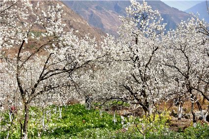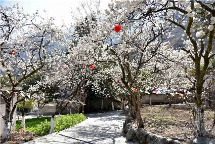 陽春三月,瀘定陽光明媚,到處生機(jī)盎然。大渡河畔的杵坭、田壩等地櫻桃花在田間競(jìng)相綻放,一團(tuán)團(tuán),一簇簇,一朵朵潔白的花兒緊緊簇?fù)碇?,綴滿枝頭。一陣陣微風(fēng)吹來,櫻桃花隨著枝條在風(fēng)中輕盈地?fù)u曳。