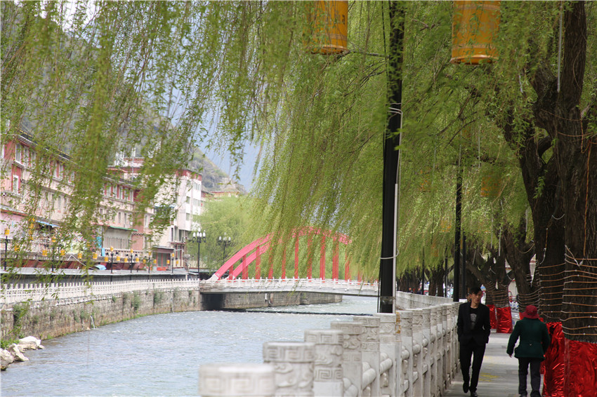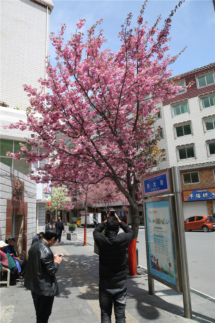 當(dāng)春天遇見最美的櫻花時,驚艷了整個康定。櫻花與身邊人都將成為春日里的浪漫風(fēng)景。櫻花之美,美在氣勢,櫻花紛飛,夢幻唯美。每年4月中旬,康定城北門的櫻花綻放后,人們像是約好了一樣聚集到這里,共赴這一場甜美盛宴。這一路繁花似錦,人們穿過枝椏花正盛的櫻花林,穿過粉色海洋,徑直奔向一個浪漫的童話,一路櫻花飄散,一路粉光燦爛。櫻花絢麗繽紛、陸續(xù)綻放,若恰逢一陣春風(fēng)經(jīng)過,櫻花瓣隨風(fēng)舞動,猶如紛落的雪花,空氣中浮動著櫻花特有的淡淡香氣,令人不禁懷疑自己置身夢境?!翱刀ǖ拇禾靵淼靡硪恍?,綻放的櫻花,滿街的花草,折多河畔楊柳依依,康定的春天無比驚艷,醉了游人。”周先生一邊拍照,一邊感嘆,他在康定生活了40多年,20年前的康定,可以說找不到像樣的花草樹木,進入新時代,康定城市變美了,城市綠化走在了前面,城市的美譽度舒適度不斷提升。康定之春,春色滿園,姹紫嫣紅,風(fēng)光旖旎。