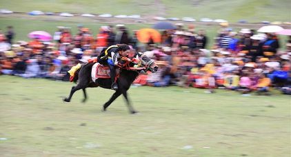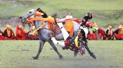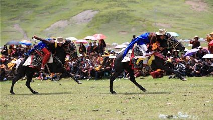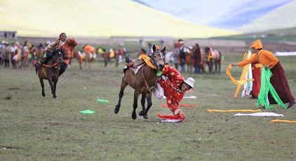 7月23日,四川甘孜藏族自治州理塘縣村戈鄉(xiāng)賽馬活動開始,牧民們在馬背上一顯身手。每年藏歷六月,當草原上格桑花盛開的時候,四川省理塘縣24個鄉(xiāng)(鎮(zhèn))就會按照習俗舉辦隆重的賽馬會來拜祭神山,慶祝豐收。迄今有400多年歷史的賽馬分為耐力賽、小走賽、馬術(shù)賽等,其中最為精彩的是馬術(shù)賽:馬肚藏身、馬背倒立、飛騎射擊、拾哈達等,驚險刺激。2008年6月,此項活動被列入四川省級非物質(zhì)文化遺產(chǎn)保護項目。(朱虹 葉強平)