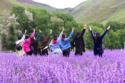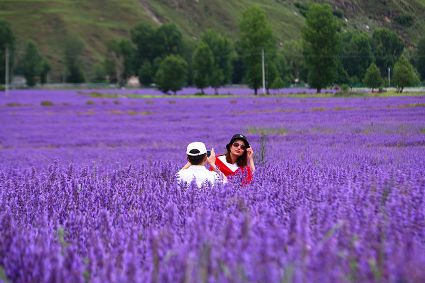 “沒想到攝影天堂竟然還藏著猶如‘普羅旺斯’一樣的薰衣草花海,真是猶如夢境。”“在藍(lán)天白云下,紫色花海令人沉醉!”“高原清新的空氣中還彌漫著花香,一幀一點都是風(fēng)景大片。”“成功打卡全國海拔最高的薰衣草花海,趕快轉(zhuǎn)發(fā)朋友圈?!?/p>