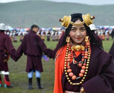 7月31日,四川理塘毛埡壩草原上藏族同胞身穿盛裝齊聚一堂,跳起千人鍋莊,開心“耍壩子”。