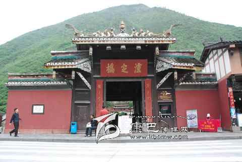 瀘定橋始建于清康熙44年 (1705年),次年五月竣工,康熙御筆題名“瀘定橋”。橋身共由13根鐵鏈組成,其中底鏈九根,扶手四根。橋東西兩端各有橋臺一座,西端觀音閣下有康熙題寫之《瀘定橋》石碑,橋東有《御制瀘定橋碑記》,瀘定橋是大渡河上第一座穩(wěn)固的大鐵索橋。1935年中國工農(nóng)紅軍晝夜行軍240里,英勇飛奪瀘定橋,打開了北上抗日的通道,“十三根鐵鏈托起了一個共和國”,毛澤東同志為此寫下了“大渡橋橫鐵索寒”的壯麗詩句,瀘定橋自此名揚四海,成為中國紅色第一橋。為紀(jì)念紅軍飛奪瀘定橋這一壯舉和奇跡,于1985年在沙壩建立了“紅軍飛奪瀘定橋紀(jì)念館”和紀(jì)念碑。紅軍飛奪瀘定橋紀(jì)念碑由鄧小平同志題寫碑名,聶榮臻元帥題寫碑文。紅軍飛奪瀘定橋紀(jì)念館收集了紅軍飛奪瀘定橋時用過的門板、槍、炮、紅軍的旗幟、文件箱、信件證明、標(biāo)語、戰(zhàn)報、手雷、馬刀等珍貴文物110余件以及177幅歷史照片。瀘定橋是全國首批重點文物保護(hù)單位,是國家重點培育的 “紅色旅游區(qū)”、重點組織規(guī)劃的 “紅色旅游精品線路”和重點建設(shè)的 “紅色旅游經(jīng)典景區(qū)”。