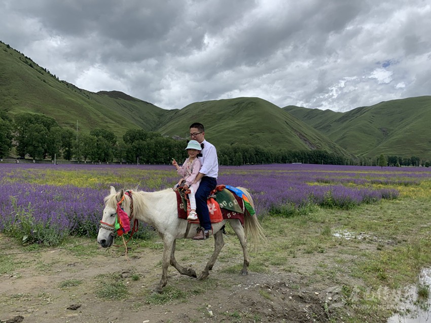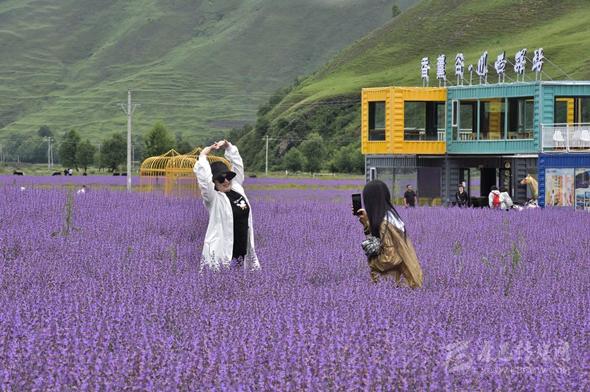是時(shí),微風(fēng)乍起,黛山環(huán)抱下的花海漾蕩著瀲滟的紫光,裹挾著無邊的浪漫和淡淡的芳香,向棧道上的游人涌來,彌漫到腳邊、四溢到身旁——踏訪這個(gè)藏在川西高原的“普羅旺斯”詩(shī)境實(shí)地,一幅美不勝收的“夏日高原送爽圖”令人心迷神醉。