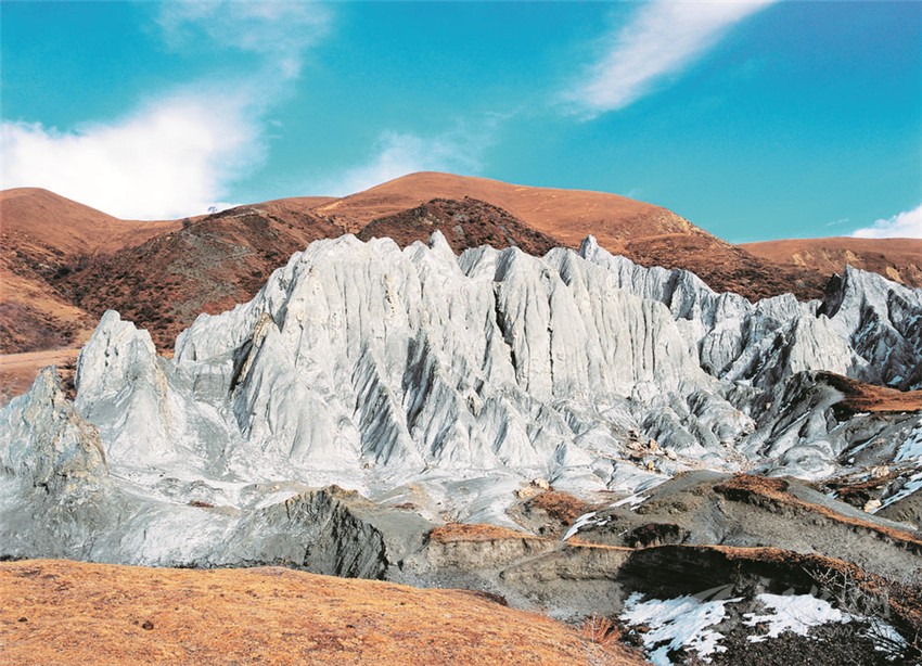 質(zhì)地較軟的糜棱巖石林,它的生命也是有限的,在長時(shí)間的風(fēng)霜雪雨中,終有一天它也將分崩離析、成泥作土。在大自然面前,它既壯觀又脆弱!它就像矗立于川藏線上的驚嘆號,不僅蘊(yùn)藏著鮮水河斷裂帶的諸多信息,又以孤傲的身軀、奇異之美詮釋著大自然的神秘力量。