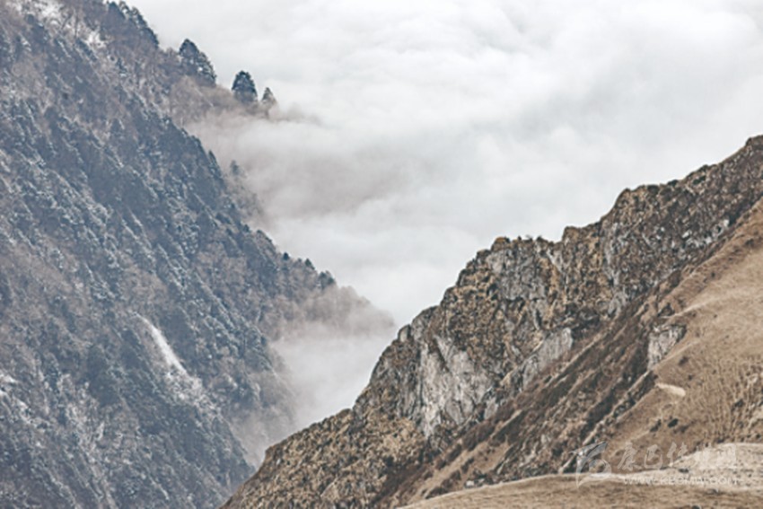 橫斷山主峰貢嘎山的西南坡,山勢陡峭,無數(shù)的錐狀山巒余峰,如刀林劍筍。雪山之下,溝谷縱橫,深邃不可測,這是現(xiàn)代交通難以到達(dá)的地方,這些深幽的峽谷中,陽光最難以照射的皺褶間,最易隱匿秘境。