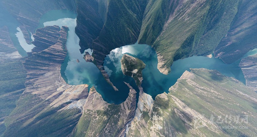 天龍湖是一個向上的世界,這世界被山水抬舉。記者從最佳視角——位于峽谷核心區(qū)普巴絨鄉(xiāng)比貢寺所在的山脊俯瞰,“九曲回腸”的一灣灣碧水在瘦削相對的青山之間,串連似珠玉,蘊翠含黛、峻峭生姿。