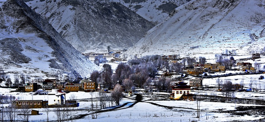 這個季節(jié)進(jìn)入德格,在途中放眼望去,窗外一片白雪茫茫,雪花覆蓋著道路,覆蓋著印經(jīng)院、新路海,覆蓋著德格的樹木與秋草。