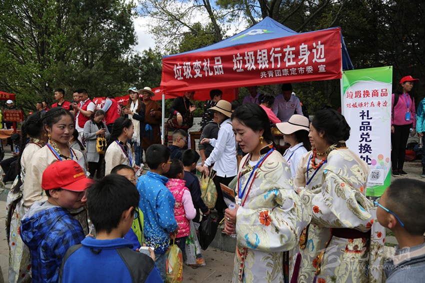 曬佛儀式之后是第三屆“梵音”音樂會。音樂會在由州歌舞團(tuán)演繹的面具舞《祈福康定》中拉開序幕,13個表演節(jié)目中,既有透人心靈的梵音演唱和二胡演奏,又有激蕩人心的說唱表演和流行演唱,還有質(zhì)樸脫俗的原生態(tài)民歌演唱和群舞鍋莊,時尚和古樸、流行與傳統(tǒng)都在這里得到了集中展現(xiàn)。原生態(tài)歌曲《溜溜調(diào)》,原創(chuàng)歌曲《康定先生》《新編木雅鍋莊》等極具康定特色的節(jié)目更是將情歌故里的人之美、景之美、文化之美展現(xiàn)得淋漓盡致。將近90分鐘的表演高潮迭起、精彩紛呈,現(xiàn)場喝彩聲、歡呼聲此起彼伏,手機(jī)、單反、平板、航拍交相輝映,忙著錄視頻、拍照片、發(fā)微博、曬動態(tài)的人更是比比皆是在。除了精彩的表演,現(xiàn)場身著華麗盛裝的康巴美女也是一道靚麗的風(fēng)景,引得無數(shù)中外游客爭相與之合影留戀。從四面八方趕來叫賣、推銷各種商品的店商和攤販也為此次活動增添了不少生氣。此外,康定團(tuán)市委還特意在活動現(xiàn)場開展了“垃圾變禮品”活動,通過贈送禮品鼓勵大家清理垃圾,此次活動雖然人流巨大但場地衛(wèi)生異常良好。