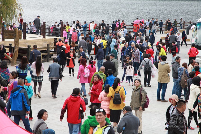游客蜂涌木格措。本網(wǎng)記者 田杰 攝