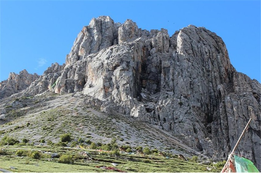 扎嘎神山又名為朗郎神山。神山山頂裸露,紅白相間的花崗石壘積形成數(shù)座山峰。主峰海拔4600米,如刀砌斧劈,險(xiǎn)峻雄偉,直指云霄。傳說(shuō)中文殊、金剛手、觀世音、法王松贊干布祖孫三代、蓮花生大師等眾多神靈曾經(jīng)蒞臨此山,留有許多圣跡,故名揚(yáng)藏區(qū)。