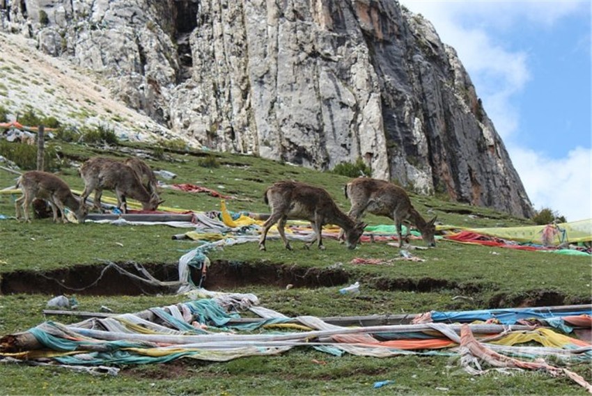 森林中成群結(jié)隊(duì)的盤(pán)羊是扎嘎神山的一道風(fēng)景,這里的盤(pán)羊遇人不驚,特別是與寺廟的僧人和睦共處,如果你前往扎嘎神山游玩還可看見(jiàn)盤(pán)羊在僧人手掌上舔食的動(dòng)人情景。