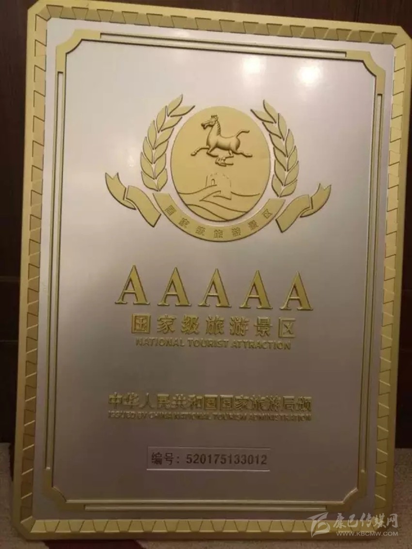 國(guó)家旅游局頒發(fā)給海螺溝景區(qū)的國(guó)家5A景區(qū)牌。