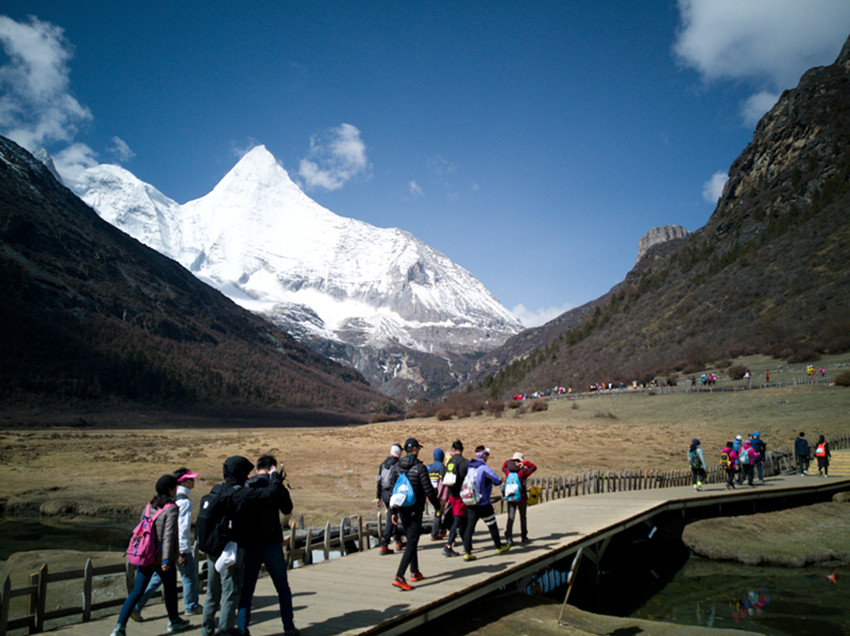 游客游覽亞丁美景。 王磊 攝