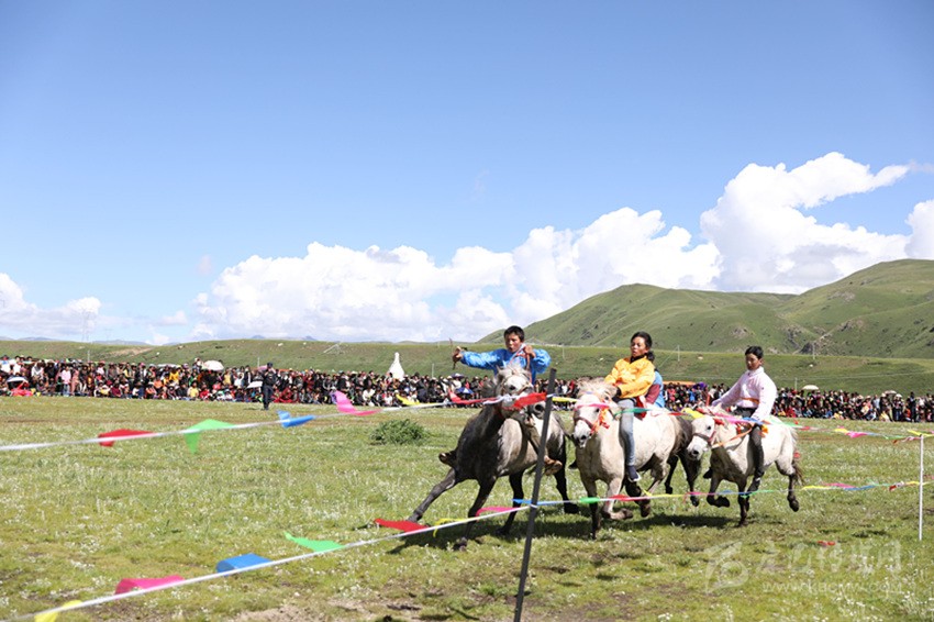 馬尼干戈鎮(zhèn)全境橫貫國(guó)道317線(xiàn),是德格典型的純牧業(yè)鄉(xiāng)鎮(zhèn),轄區(qū)內(nèi)地廣人稀,草場(chǎng)豐富,有著十分豐富的牧俗文化,“西天瑤池”玉隆拉措也坐落于此。每年的7月底8月初舉行的賽馬節(jié),是當(dāng)?shù)刈顬槁≈氐膫鹘y(tǒng)民族節(jié)日之一。在雪域高原上綠草如茵、各類(lèi)鮮花爭(zhēng)相斗艷的最美時(shí)節(jié),牧民們會(huì)身著華麗的藏裝,自發(fā)聚集在一片開(kāi)闊的草場(chǎng)上,搭帳篷、唱歌跳舞,并開(kāi)展賽馬、賽牦牛、賽跑和馬技表演、趣味游戲等民俗民間活動(dòng),增進(jìn)相互之間的感情,促進(jìn)鄰里和睦。