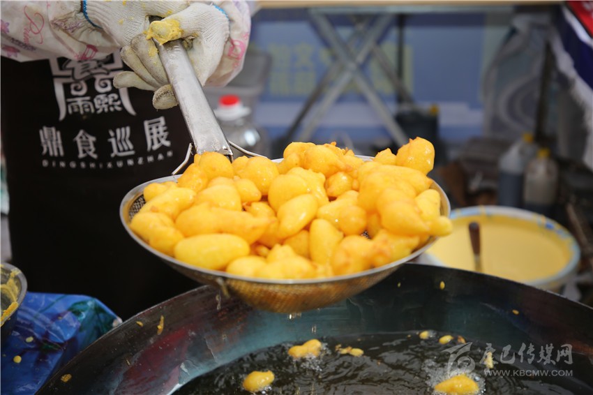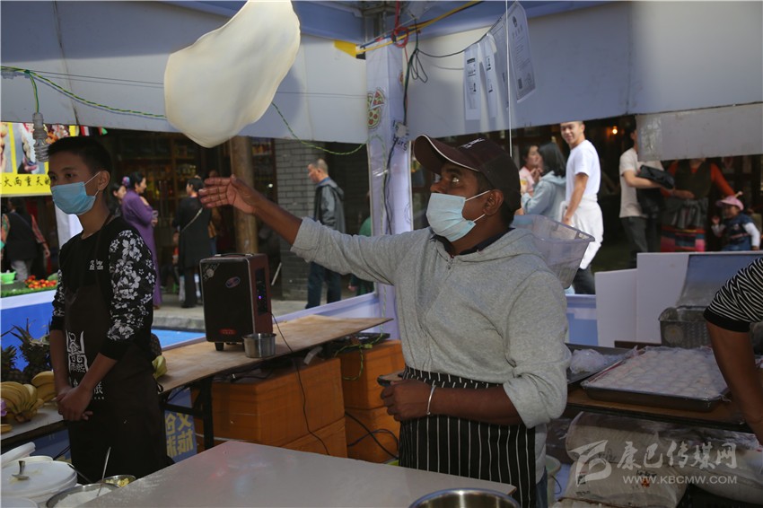 要說(shuō)美食節(jié)最炫酷的店鋪,那非“印度飛餅”莫屬了。記者穿過(guò)層層圍觀的人群,點(diǎn)了一份菠蘿飛餅。只見(jiàn)廚師將捏好的面團(tuán)在案板上揉了幾下,便捏緊面餅一端按順時(shí)針?lè)较蜣D(zhuǎn)動(dòng),手里的面餅越轉(zhuǎn)越大,越轉(zhuǎn)越薄,幾近透明,接著就是放餡料,稍做煎炸,切割裝盤(pán),短短一分鐘內(nèi),一氣呵成。記者接過(guò)盤(pán),咬下一口,“喀嚓”一聲,再一口就吃到了菠蘿的清香,外層淺黃松脆,內(nèi)層綿軟白皙,略帶甜味,好一個(gè)外脆內(nèi)嫩??!嚼起來(lái)層次豐富,一軟一脆,口感對(duì)比強(qiáng)烈,嚼過(guò)之后,齒頰留芳。當(dāng)脆餅撞上菠蘿的清香,就像在夏天突然掉進(jìn)一個(gè)水池,清爽又驚喜?!案杏X(jué)就是一件的藝術(shù)品啊!”如此的驚嘆聲從人群中迸發(fā)出來(lái)。