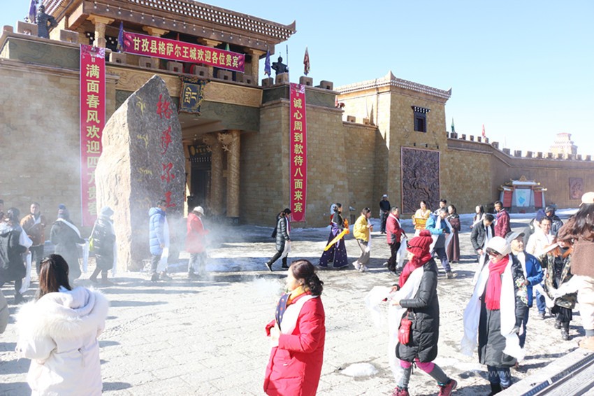 王城的標(biāo)志性建筑森珠達(dá)孜王宮,在靜態(tài)的文化展示與動(dòng)態(tài)的文化體驗(yàn)中,呈現(xiàn)出格薩爾王征戰(zhàn)四方、造福百姓的千秋善業(yè),再現(xiàn)了醇厚的人文風(fēng)情。