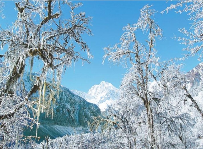 雪是柔情的,石山是墨翠的,猶如一幅冬日寫意圖,橫亙在天地之間的美色,而這就存在于冬季的道孚。