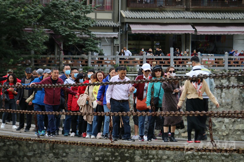 游客體驗瀘定鐵索橋。本網(wǎng)資料庫圖