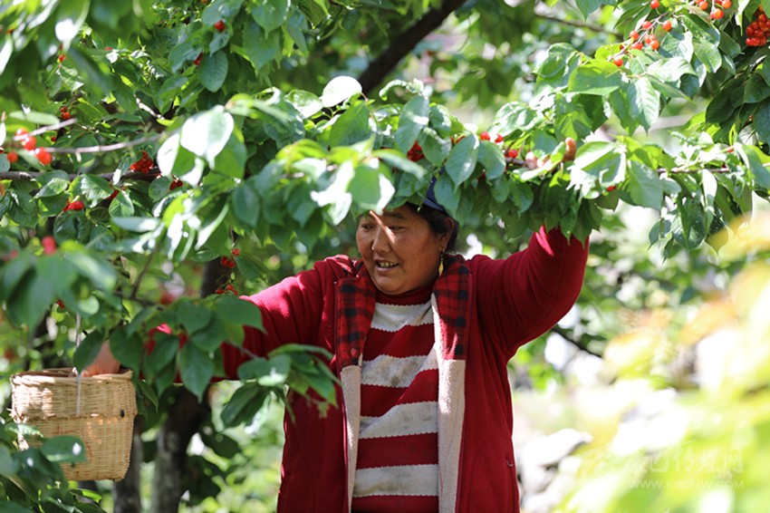 眾所周知,瀘定紅櫻桃早已紅遍四川,瀘定紅色文化更是曉喻九州。近年來,瀘定縣以創(chuàng)建“國家全域旅游示范區(qū)”“天府旅游名縣”為抓手,從旅游產(chǎn)品打造、旅游服務保障、旅游形式多元化等方面發(fā)力,大力推動“旅游+”和“+旅游”產(chǎn)業(yè)深度融合發(fā)展,推出紅色經(jīng)典瀘定橋、冰川溫泉海螺溝、最大平臺牛背山、景觀大道G318、最美階梯二郎山、陽光田園大渡河、川藏茶馬古驛道“七張名片”,同時將以櫻桃產(chǎn)業(yè)為主的果蔬產(chǎn)業(yè)同鄉(xiāng)村休閑旅游業(yè)深度整合。特別是自新冠疫情發(fā)生以來,瀘定縣積極思謀、創(chuàng)新探索“旅游+農(nóng)業(yè)”“網(wǎng)絡+營銷”“線上+線下”的農(nóng)旅發(fā)展新模式,打通網(wǎng)絡電商與農(nóng)村物流渠道,努力保證農(nóng)民增產(chǎn)增收。杵坭村種植大戶劉爽興奮地向記者介紹:“今年收成不錯,銷售路子也不愁!恩桃兒還沒熟,就接到一摞訂單。辦了12屆的采摘節(jié),真是把我們?yōu)o定紅櫻桃的名氣打出去了,期期游客爆滿,大家從全省各地過來吃恩桃兒,都夸我們紅櫻桃好,村民心頭美滋滋!”