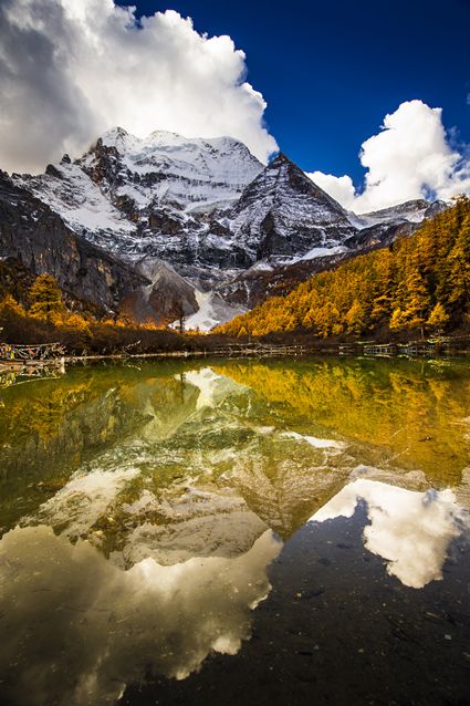 秋色與藍(lán)天相映 明珠與雪山成趣