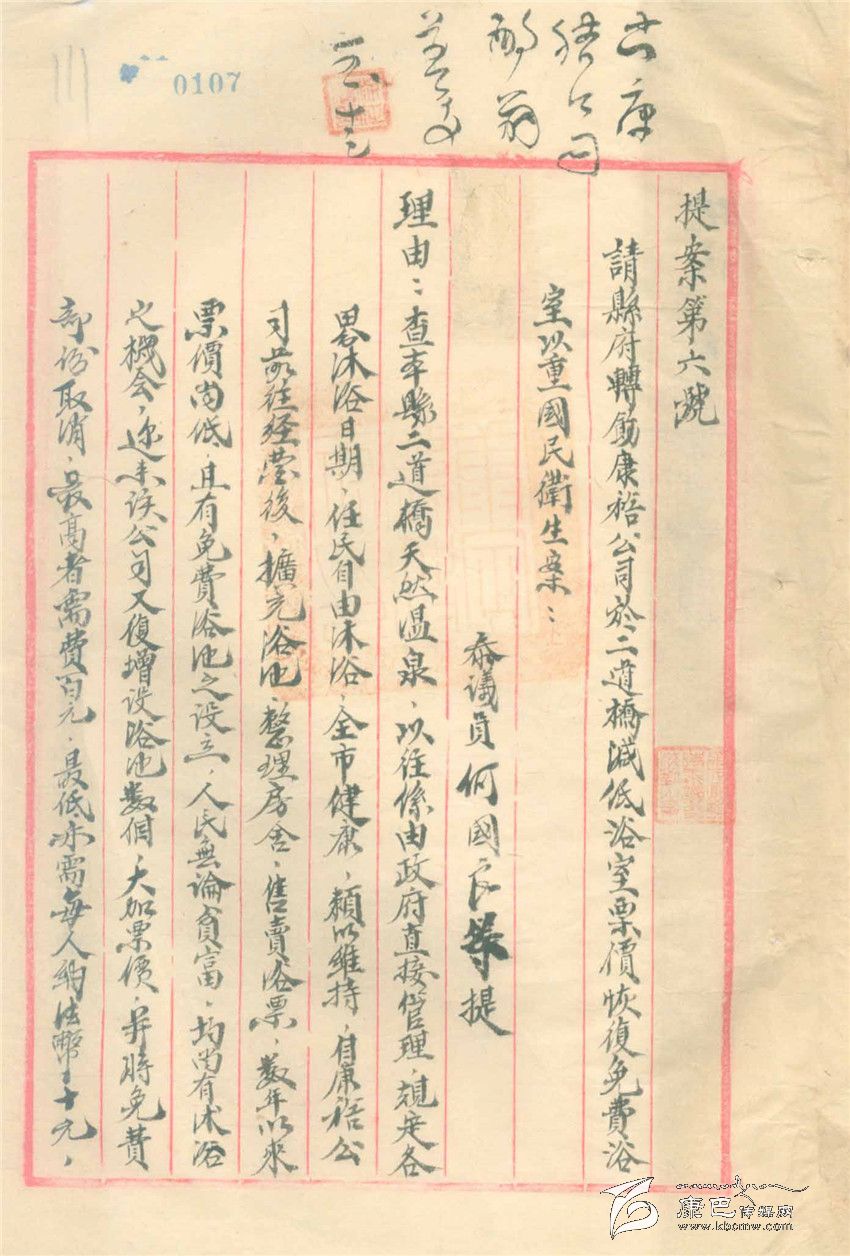 另一份舊檔案也有趣,這是一份由一名參議員提出的提案,內(nèi)容是由于生活在康定的人、包括公務(wù)人員在內(nèi),因?yàn)槭杖肷?,生活困難。請(qǐng)求康定縣政府出面給經(jīng)營(yíng)二道橋的“康裕公司”提出二道橋洗浴不收費(fèi),經(jīng)營(yíng)方的虧空可以在其它經(jīng)營(yíng),如餐飲獲得的利潤(rùn)中解決。參議會(huì)上還通過(guò)了這個(gè)提案,說(shuō)是“原案所擬辦法尚屬可行,擬送請(qǐng)縣府轉(zhuǎn)飭康裕公司照辦”。這份提案再無(wú)下文,康裕公司是不是照辦了,不得而知,就是參議會(huì)是不是轉(zhuǎn)給了康定縣政府也不得而知。以今天的眼光看,這份提案有滑稽、有趣的一面,卻也有關(guān)注民生而十分無(wú)奈的一面。