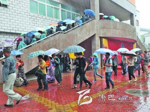 5月16日,清晨,成都陰郁的天氣毫不留情灑下急雨。西南民大科技館前,精心布置的紅色主席臺(tái)在雨簾中盛開(kāi)一份火紅的心愿。前來(lái)觀展的人們撐著一把把雨傘在雨中等待。各大媒體記者冒雨進(jìn)行報(bào)道。