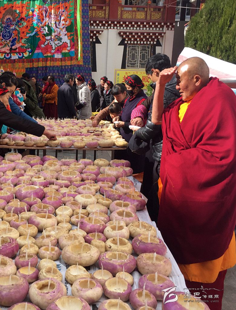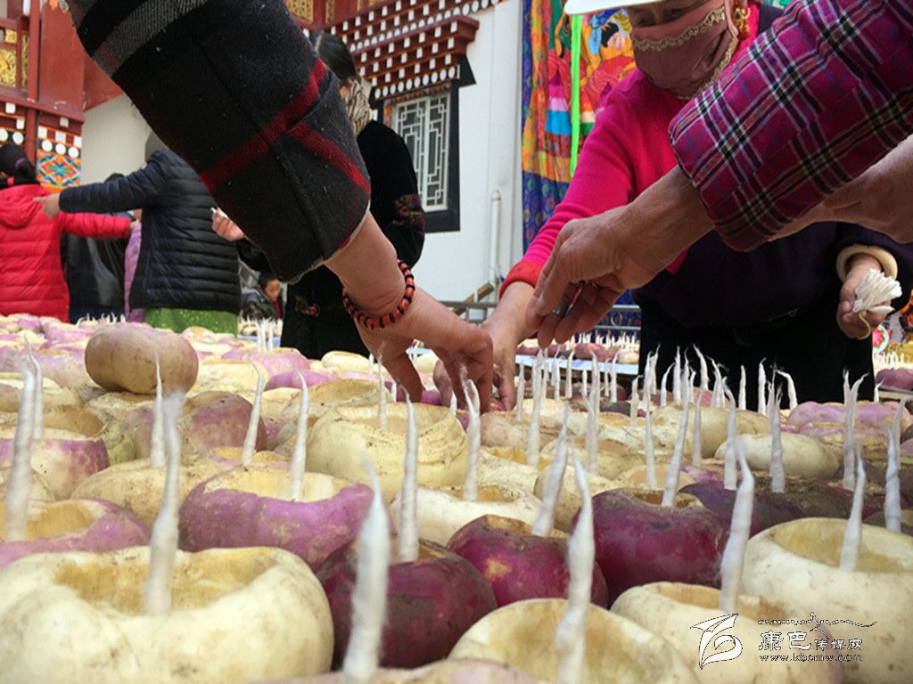 我州最具特色的燃燈節(jié)當(dāng)屬康定市城內(nèi)安覺(jué)寺舉辦的燈會(huì)。每到這一天,康定市民會(huì)將本地盛產(chǎn)的“芫根”洗干凈,然后掏空中間的瓤,在里面放置燈芯,做成酥油燈盞,入夜以后,數(shù)萬(wàn)盞酥油燈一起點(diǎn)燃。因此又稱“芫根燈會(huì)”。12月6日晚,康定市民結(jié)伴相約前來(lái)安覺(jué)寺祈福,盛況空前。