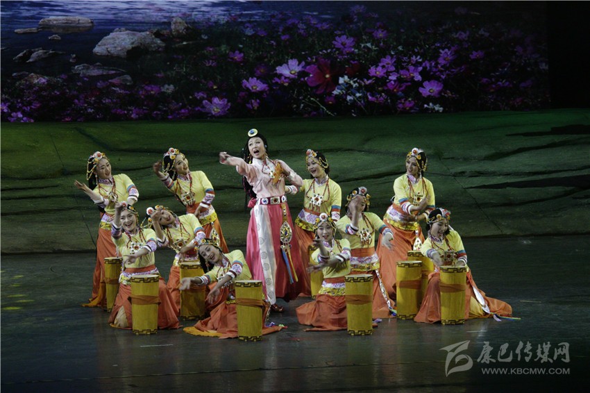 雪山、湖泊、花海、草原……圣潔甘孜的自然美景隨著故事情節(jié)的展開自如切換,生態(tài)景觀的靚麗在動靜之間呼之欲出,“蟬噪林欲靜,鳥鳴山更幽”的意境不時讓觀眾都屏神凝氣。茶馬古道、“四月八轉(zhuǎn)山會”、“燃燈節(jié)”……該音樂劇情節(jié)緊湊、劇情跌宕、演繹精湛、音樂考究,兼以炫目的多媒體視聽設(shè)計和舞臺場景布置成了評論的焦點。一系列康巴歷史文化元素推演著跌宕起伏的劇情,為全局營造了深厚的文化底蘊(yùn),直擊觀眾心靈深處。