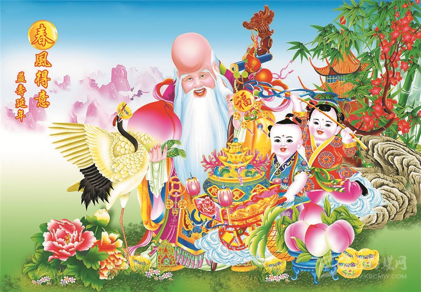 年畫對(duì)人作為一個(gè)特殊物種的感性、感覺、感官的視覺包圍,是建立在民居、家庭、居室對(duì)身體的包圍(物理空間)基礎(chǔ)之上的,也是建立在年畫的張貼對(duì)人的精神恐懼的安慰和安撫并使之安寧的精神包圍(文化空間)之中的。這雙重的視覺包圍還包括了一個(gè)從物質(zhì)和精神的家園,到對(duì)人的出身、成長(zhǎng)、成年、老齡、死亡的人生過程的全程包圍和看見。