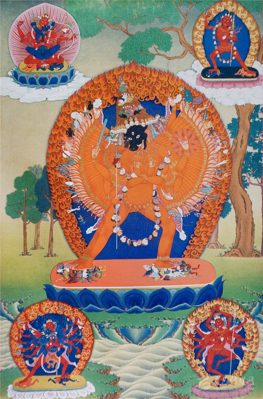 夏魯寺風(fēng)格。公元十四世紀(jì),西藏薩迦勢(shì)力興起,昆氏家族請(qǐng)了包括阿尼哥在內(nèi)的許多尼泊爾藝人來(lái)西藏從事佛教藝術(shù)工作,這就是尼泊爾畫派在西藏的興起。當(dāng)時(shí),在尼瓦爾藝術(shù)家中有一位叫“阿尼哥”(阿尼哥,Anigo,1244—1306,建筑師,元朝雕塑家,工藝美術(shù)家。尼波羅國(guó)人,為王室后裔。其祖名密迪邇,父名臘可納。阿尼哥于1244年出生在尼泊爾加德滿都帕坦城。1260年,阿尼哥帶隊(duì)抵達(dá)西藏薩迦寺,完成了黃金塔的建造任務(wù)之后,被愛(ài)國(guó)愛(ài)教大師、元朝帝師八思巴帶到了元大都,舉薦給元世祖忽必烈。當(dāng)時(shí),他擔(dān)負(fù)大護(hù)國(guó)仁王寺、大圣壽萬(wàn)安寺等皇家大寺的興建任務(wù)。)的工藝美術(shù)大師。因?yàn)樗怀龅牟拍?,而被視作“工巧天毗首羯摩”在人世間的化身。八思巴不僅委任阿尼哥主持修建了薩迦金塔,還把他帶到了北京城推薦給元朝皇帝忽必烈。在中國(guó)內(nèi)地,阿尼哥主持設(shè)計(jì)修建了北京妙應(yīng)寺和五臺(tái)山等地的大白塔。同時(shí),阿尼哥還是一位優(yōu)秀的畫家。傳說(shuō)這幅尼瓦爾風(fēng)格的唐卡《綠度母》就是阿尼哥的作品。畫面構(gòu)圖整體、細(xì)節(jié)考究精致、設(shè)色典雅,這也是尼瓦爾藝術(shù)的風(fēng)格特色。